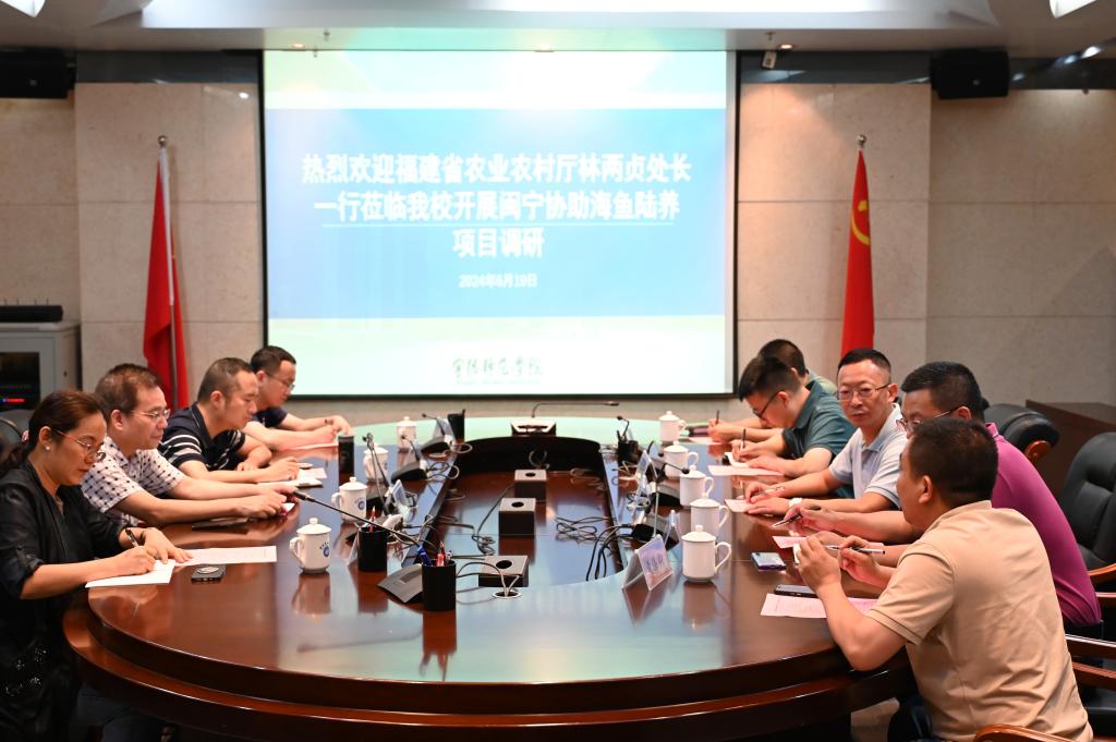 6月19日下午,福建省农业农村厅乡村振兴对口协作处处长林两贞一行莅临我校,就闽宁协作海鱼陆养项目开展深入调研交流。副校长颜桂炀出席见面会。