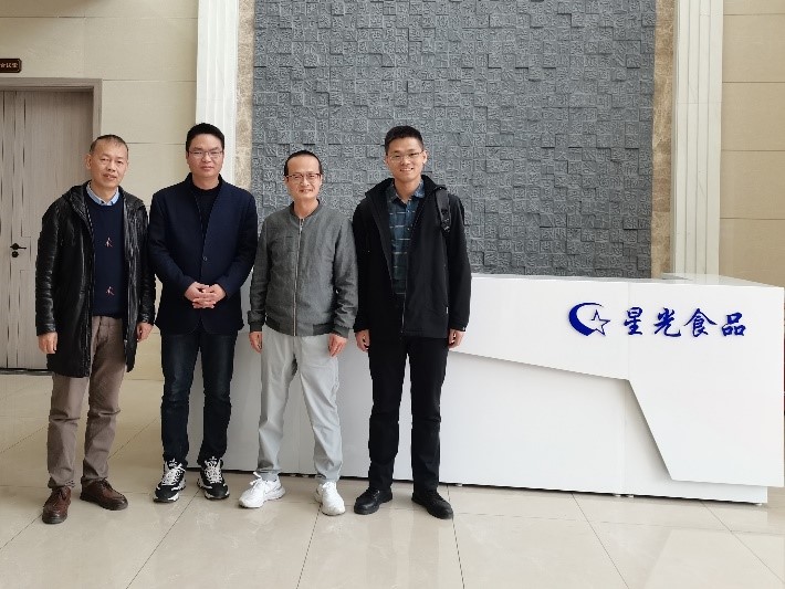 pp电子教授郭全友与宁德市星光食品有限公司执行董事陈银平交流学习出口贸易及生产过程中出现的问题,郭全友教授为企业生产出现的问题提出宝贵的意见。