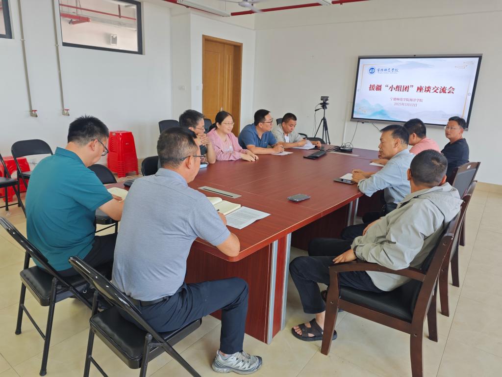 5月12日下午,pp电子开展援疆“小组团”出征交流会。学院党委书记周建辉、副院长孙壮桥和骨干教师出席会议。