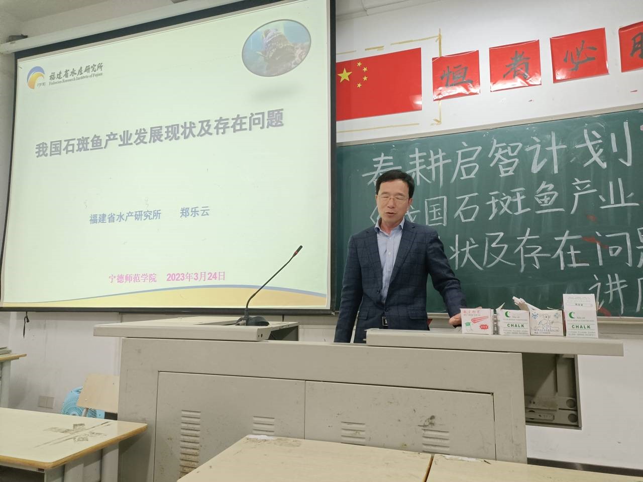 3月24日下午,福建省石斑鱼种业创新和产业化工程首席专家、福建省水产研究所海洋生物遗传育种研究中心副主任郑乐云教授级高级工程师莅临pp电子,为pp电子师生作了一场题为《我国石斑鱼产业发展现状及存在问题》的精彩报告。此次报告由pp电子海洋系主任韩坤煌博士主持,讲座吸引了pp电子100多位海洋学科师生参加。