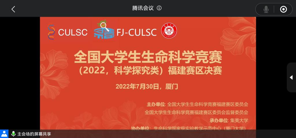 2022年7月30日,由全国大学生生命科学竞赛福建赛区委员会主办、集美大学承办、厦门大学生命科学国家级实验教学示范中心协办的全国大学生生命科学竞赛(2022,科学探究类)福建赛区决赛在厦门集美大学拉开帷幕,pp电子共有18支队伍参加此次竞赛,其中6支队伍成功进入省赛。经过紧张激烈的专家审评和线上答辩,pp电子学子在本次全国大学生生命科学竞赛中喜获国家三等奖一项,省赛二等奖一项,省赛三等奖五项。
