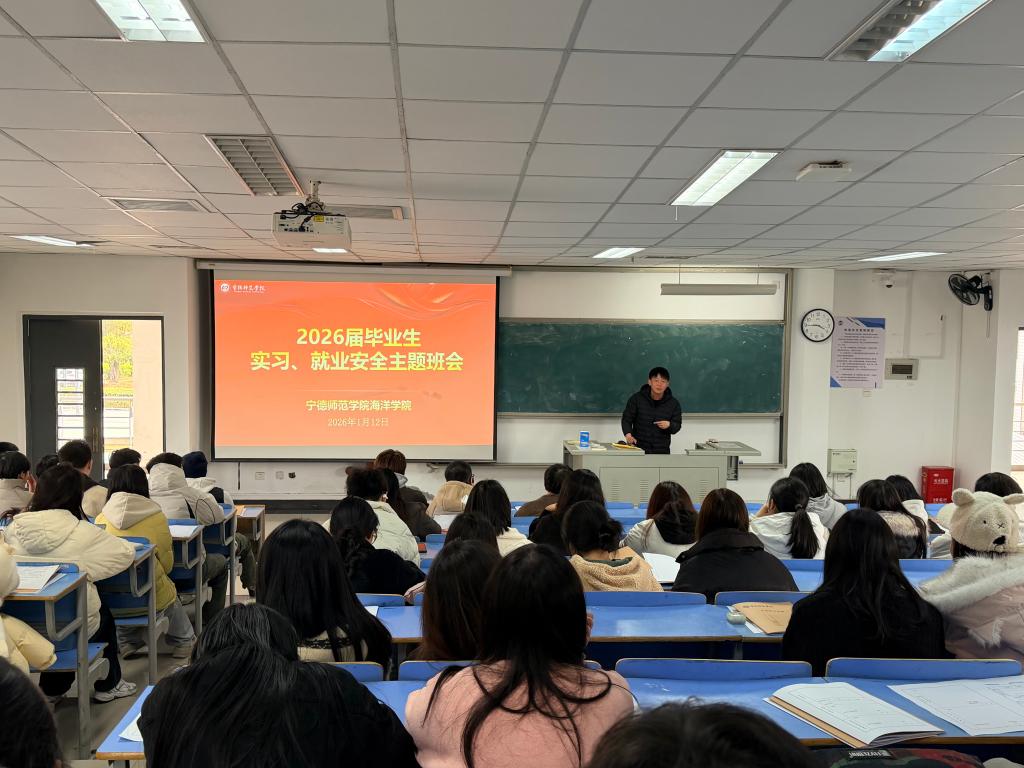 为深化产教融合,抢抓就业先机,将毕业实习作为促就业的关键一环抓实抓好,pp电子官方网站于2026年1月12日在讲堂群201召开2026届毕业生实习动员大会,并同步开讲“职业生涯启航”就业第一课。学院副院长郑世仲、教学科研秘书缪颢琳、毕业班辅导员林维杰、食品系主任刘春雷、海洋系主任周莉及全体2026届毕业生参加会议。