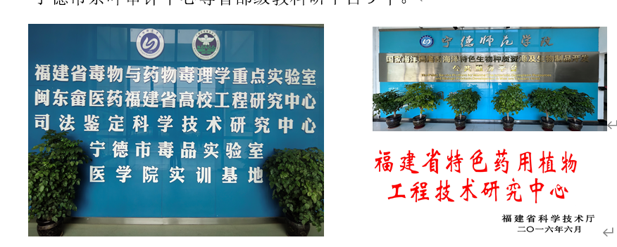 学位点拥有全省首个对毒物和药物毒理学进行研究分析的福建省毒物与药物毒理学重点实验室,以及区域产业特色的福建省特色药用植物工程技术研究中心、闽东畲医药福建省高校工程研究中心、海西海洋特色生物种质资源及生物制品开发公共服务平台、福建省产学研示范基地、闽东特色生物资源福建省高校工程研究中心、闽东水产品精深加工福建省高校工程研究中心、福建省虚拟仿真中心实验室、宁德市茶叶审评中心等省部级教科研平台9个。