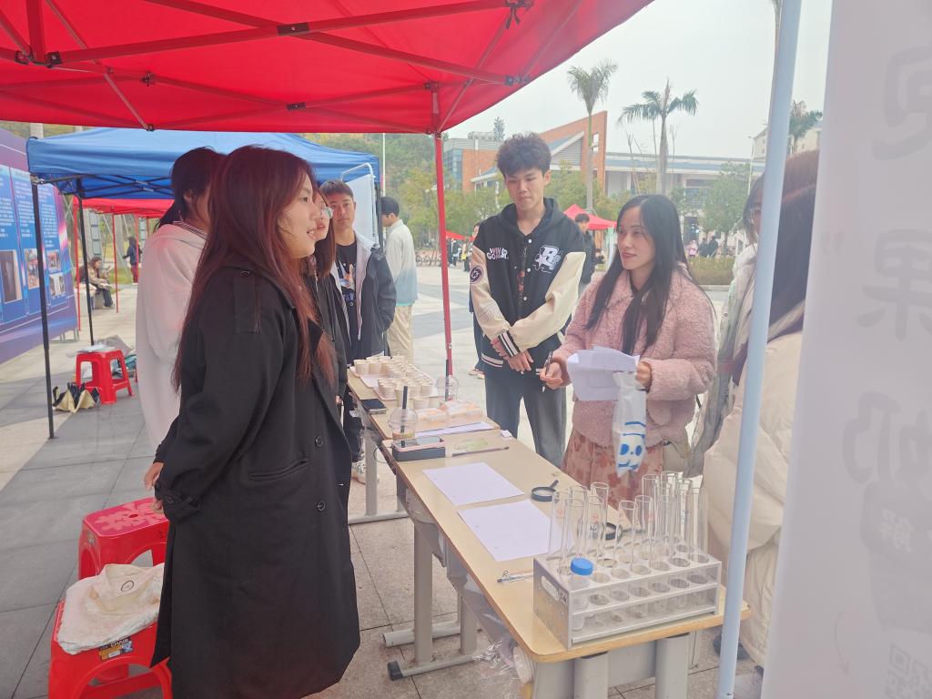 活动上,设置了茶叙等共计14个“知识”小摊,同学们可在每个小摊上参与活动打卡 ,在“闻到,闻道”小摊,同学们速识速记各种动植物香料,手动制作香包;在“大海和它的虾兵蟹将”小摊,同学们积极抢答海洋相关的知识,寓乐于学。他们热情交流,分享着各种生物的故事,用各式各样有趣的游戏科普着生物知识。在这个过程中,参与者既可以享受自然的魅力,又能感受到同学们的热情和真诚。