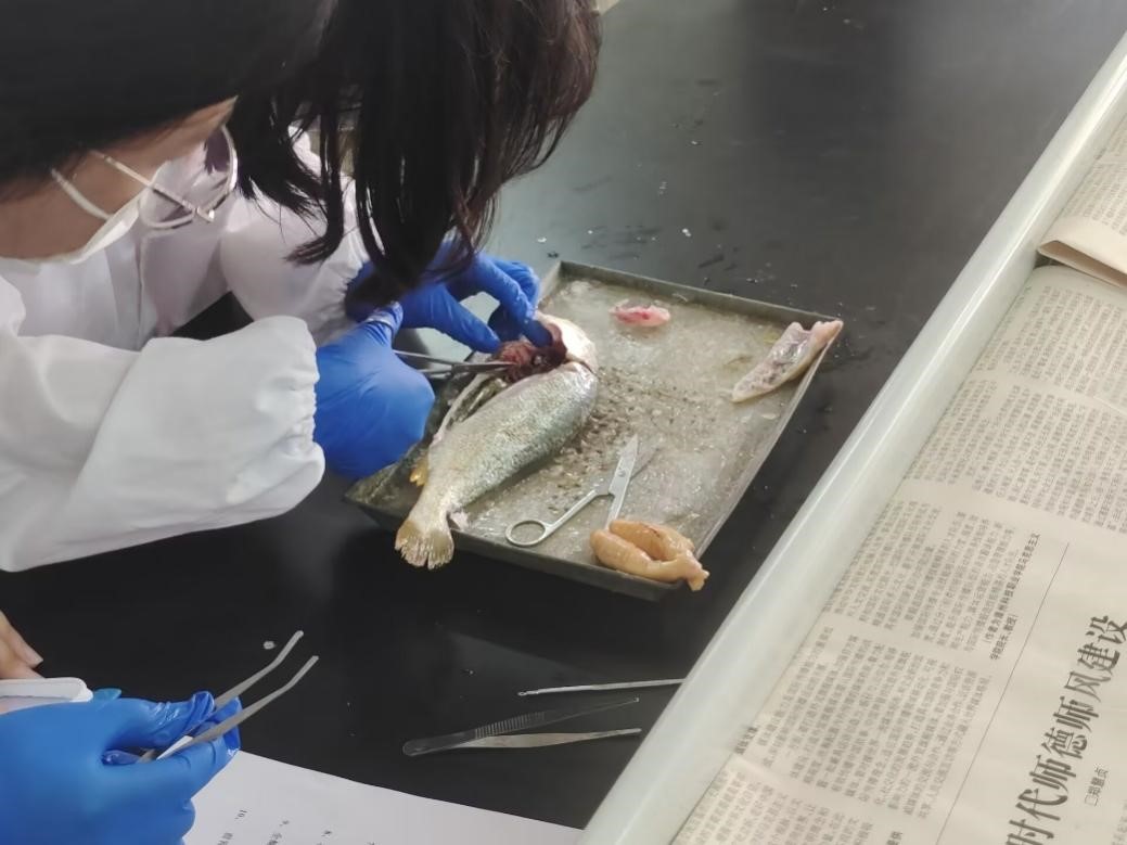 pp电子官方网站成功举办第二届海洋生物技术大赛(参赛选手正在解剖大黄鱼和拟穴青蟹)