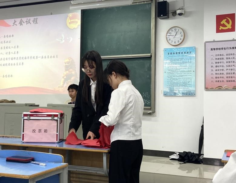 中午12:30分,会议在庄严的国歌声中开幕。此次大会本着民主、公平、公正原则以差额投票选举的方式成功通过委员候选人名单以及监票人、计票人名单。大会根据选举办法产生了共青团pp电子官方网站第一届委员会委员、书记、副书记。选举林维杰、李卓霖、陈海鑫、李晨滢、李娜、郭湉湉、江达强等7人为团委委员,选举林维杰为共青团pp电子官方网站委员会书记,李卓霖、陈海鑫为共青团pp电子官方网站委员会副书记。