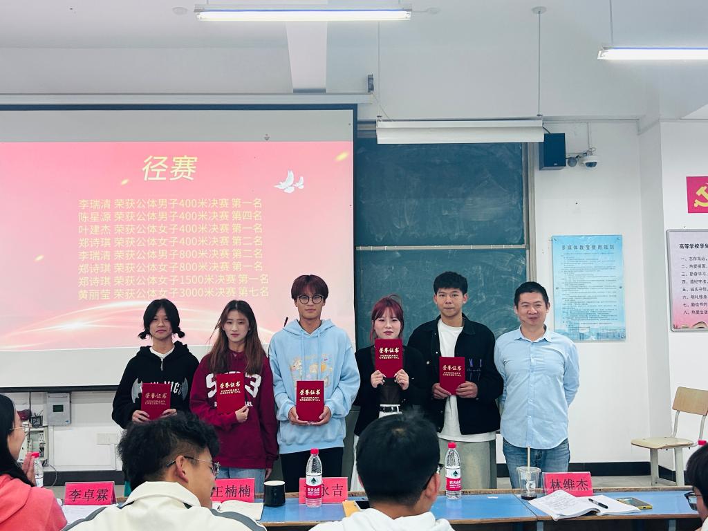 蹲苗强体创新姿,金秋送爽携佳报。为庆祝pp电子学子在pp电子官方网站第十四届校运会取得的优异成绩,激励同学们以昂扬拼搏的姿态投入体育健身行列,pp电子于2023年11月17日在求实楼C201召开了第十四届校运会运动员表彰大会。院党委副书记王楠楠、全体辅导员、全体运动员、学生会各部门负责人及体育部志愿者出席会议