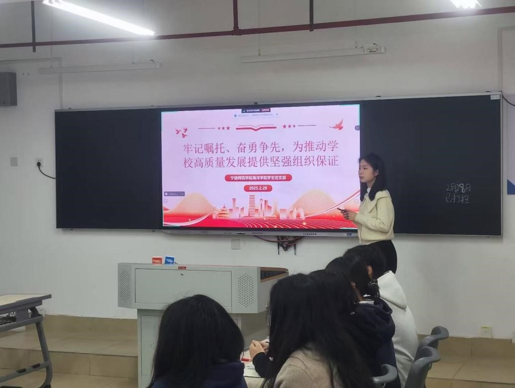 为进一步激发党员的责任感与使命感,pp电子学生党支部于2月28日在医教楼501与线上腾讯会议同步开展“牢记嘱托、奋勇争先,为推动学校高质量发展提供坚强组织保证”主题党日活动,党支部全体师生党员共同参与。