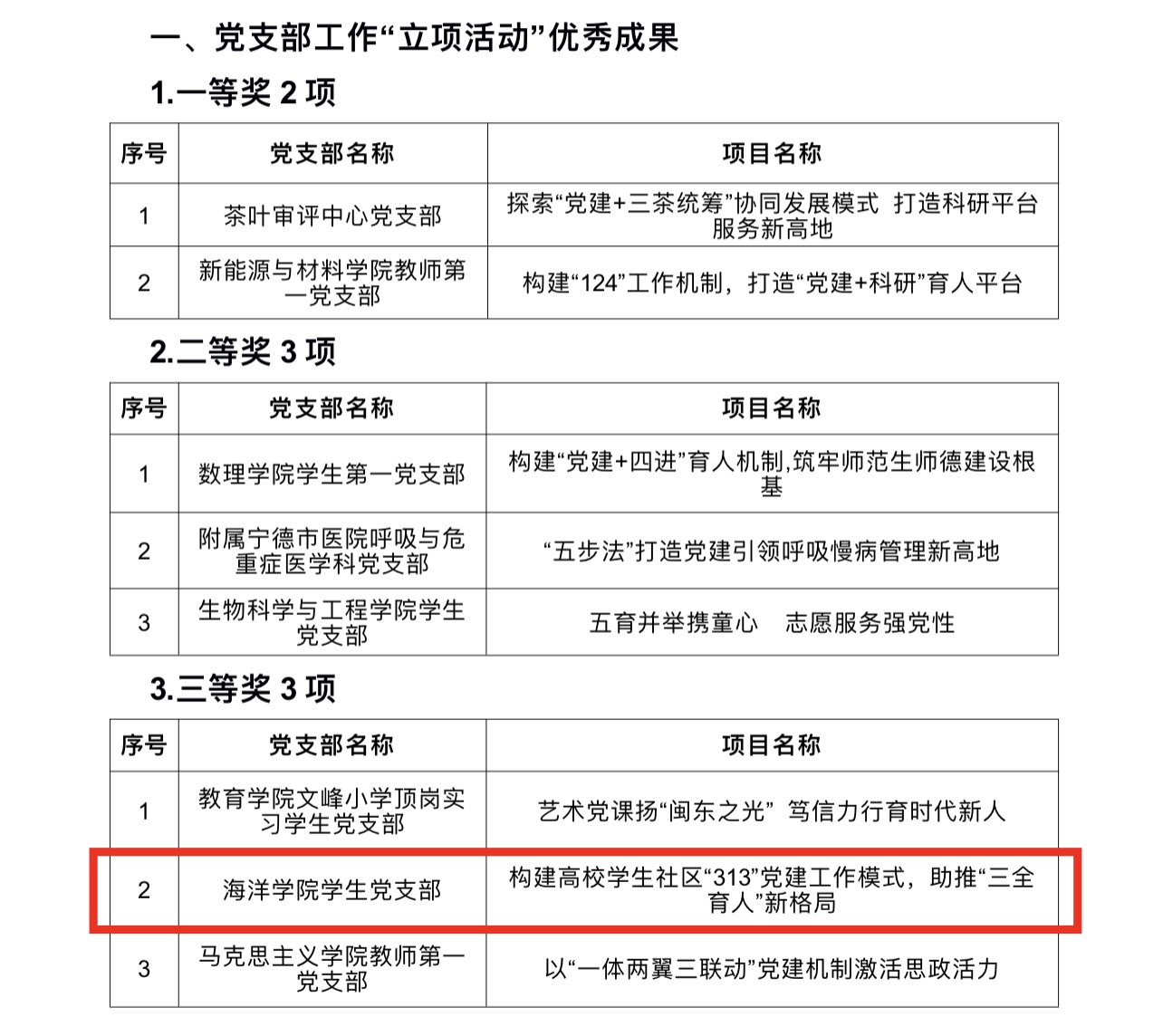 其中,pp电子学生党支部项目《构建高校学生社区“313”党建工作模式,助推“三全育人”新格局》获评党支部工作“立项活动”优秀成果三等奖;pp电子教师党支部黄伟卿老师的故事《潜心科研促振兴,悉心育人促发展》获评“党员好故事”。