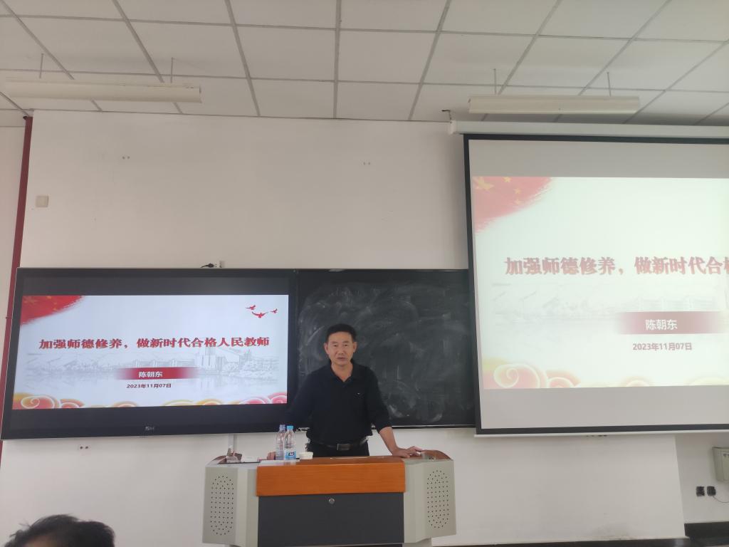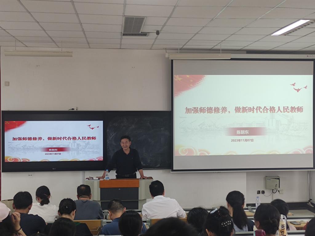 为加强pp电子师德师风建设,引导广大教职工和师范生弘扬教育家精神,争做新时代大先生,11月8日下午,pp电子邀请屏南县老年大学校长、“宁德市先进教育工作者”、深耕一线教学管理30余年的陈朝东校长,为pp电子师生做题为《加强师德修养,做新时代合格人民教师》的专题讲座。全院教职工和2023级生物科学专业学生参加。