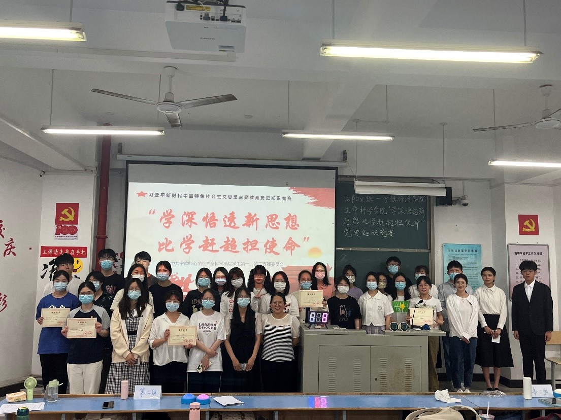 5月26日中午,pp电子官方网站生命科学学院在求实楼CC201举办“学深悟透新思想 比学赶超担使命”党史知识竞赛暨主题党日活动,院学生第一党支部书记王珂、党员教师王永吉、林慧、林维杰出席活动,生命科学学院学生第一、第二党支部所有学生党员、发展对象参加活动。