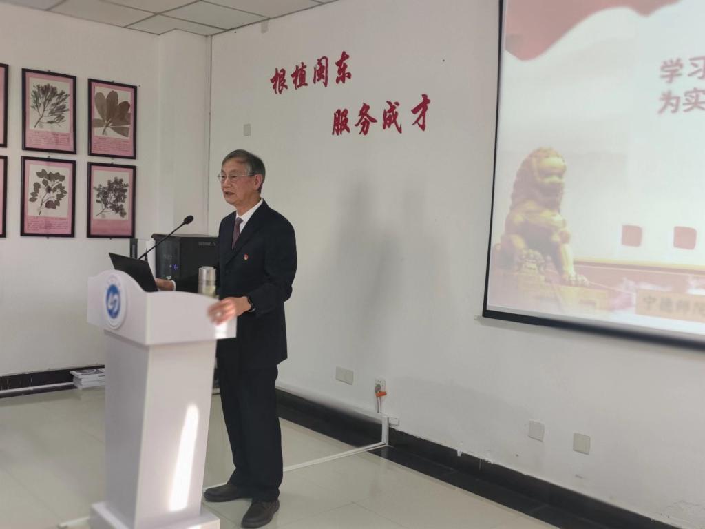 他讲到,党的二十大是新时代新征程上一次继往开来、举旗定向、谋篇布局的大会,全体师生要深刻领会二十大主题的蕴意,全面理解我们党在新征程上要举什么旗帜、走什么路、以什么样的精神状态、朝着什么样的目标继续前进。同时他从方法论的角度指导师生学习掌握党的二十大报告的丰富内涵,他提出既要在顶层设计高度来理解又要联系新时代以来确立的大政方针来把握,这样才能认识深刻、认识到位。随后他从实践基础、理论指导、使命任务、战略部署、政治保证、团结要求等六个方面,逐一阐述了党的二十大报告的丰富内涵。他用“3”+“16”+“5”这3个数字,总结了新时代十年的伟大变革,讲明过去5年和新时代十年的伟大成就是实践基础,马克思主义中国化时代化是理论指导,以中国式现代化全面推进中华民主伟大复兴是使命任务,高质量发展、教育科技人才、人民民主等十个方面是今后的战略布局,以及以伟大自我革命引领伟大社会革命是政治保证。