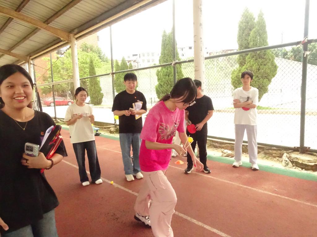 全体学员在学生党支部党员带领下开展“趣味破冰行动”。通过九宫格飞盘挑战赛、乒乓球接力赛、接力摸石过河等游戏锤炼团队精神,凝聚奋进共识。
