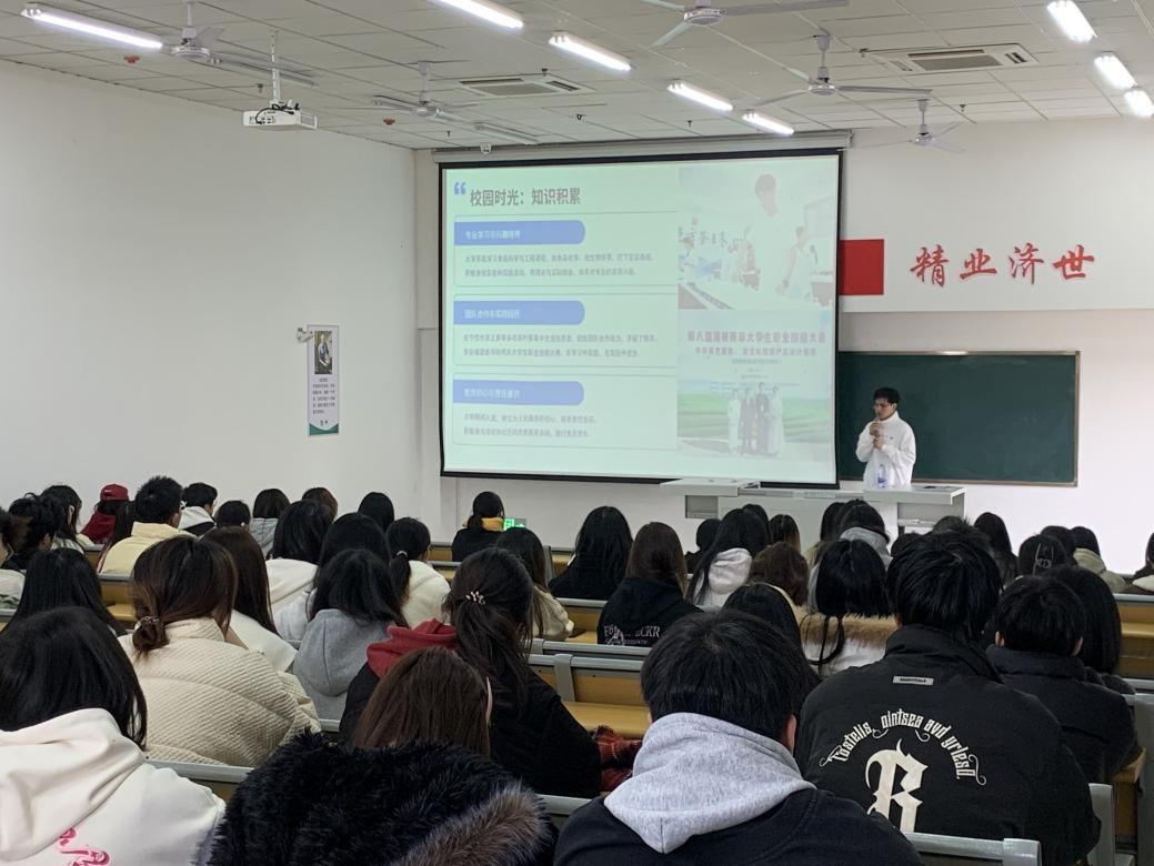 202538日,在医教楼101,pp电子邀请2018级食品科学与工程专业毕业生代表陈志鹏回校为pp电子学子开设《“工者匠心:人生是场拉力赛”》讲座报告,为现场听众带来了一场别开生面的职业与人生分享。